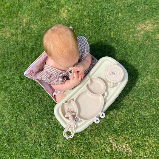 Our portable baby chair is designed for little ones 6 months - 3 years old, or when your baby is over 15kg. Right through to toddlerhood, it’s perfect for wriggly dinner dates, beach picnics, and brunches with the crew.